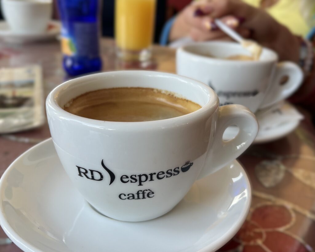 Cestou si robíme niekoľko zastávok, kde si natiahneme kosti, vypijeme kávu a zameníme peniaze. Sedíme za okrúhlym stolom a študujeme nápojový lístok, ktorému veľmi nerozumieme, no ak ste kávičkár ako ja, potom objednať si nie je vôbec ťažké. 🙂